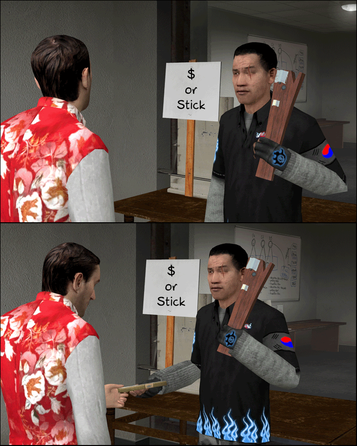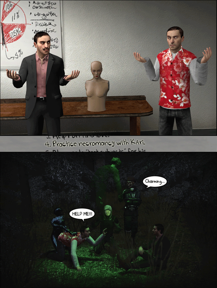 i already pointed out the thing about the notepad, i don't see zeeky saying prepare to die, now i notice it! and the notepad says " why are you reading this? why the fuck would you be reading this? this has nothing to do with the picture. your focus is supposed to be on me. guess i did a horrible job keeping your attention to the story... asshole.