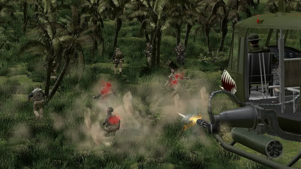 <nitpicking> Try moving the camera closer to the chopper next time. It'll look more like the pilot's view while narrowing your overall view of the field, which is good since you can then pack that area with more NVA and asplosions and stuff.